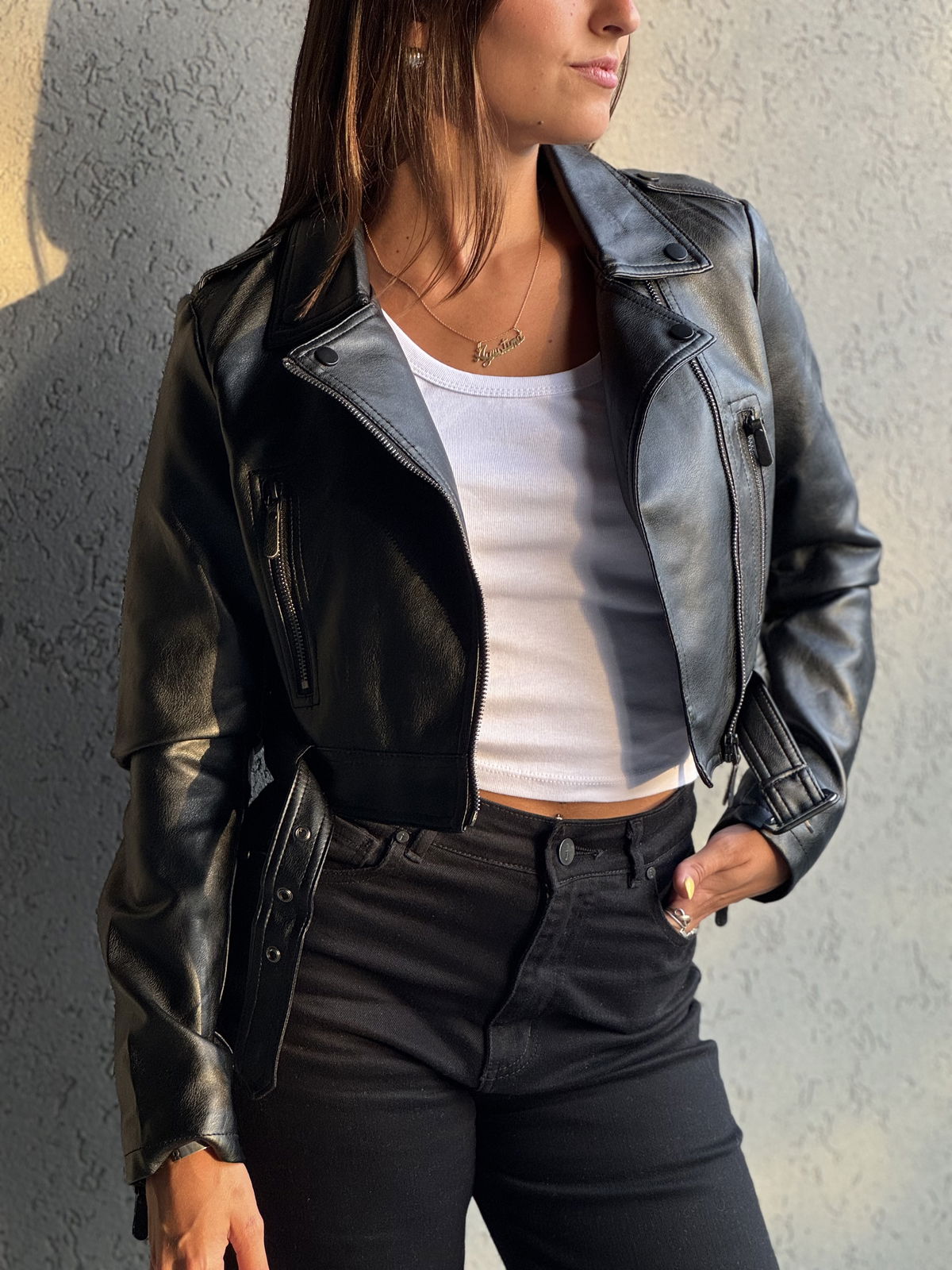 Campera de ecocuero importada. Forrada en su interior . Este modelo es entallado recomendamos elegir un talle más a lo habitual para mayor comodidad.